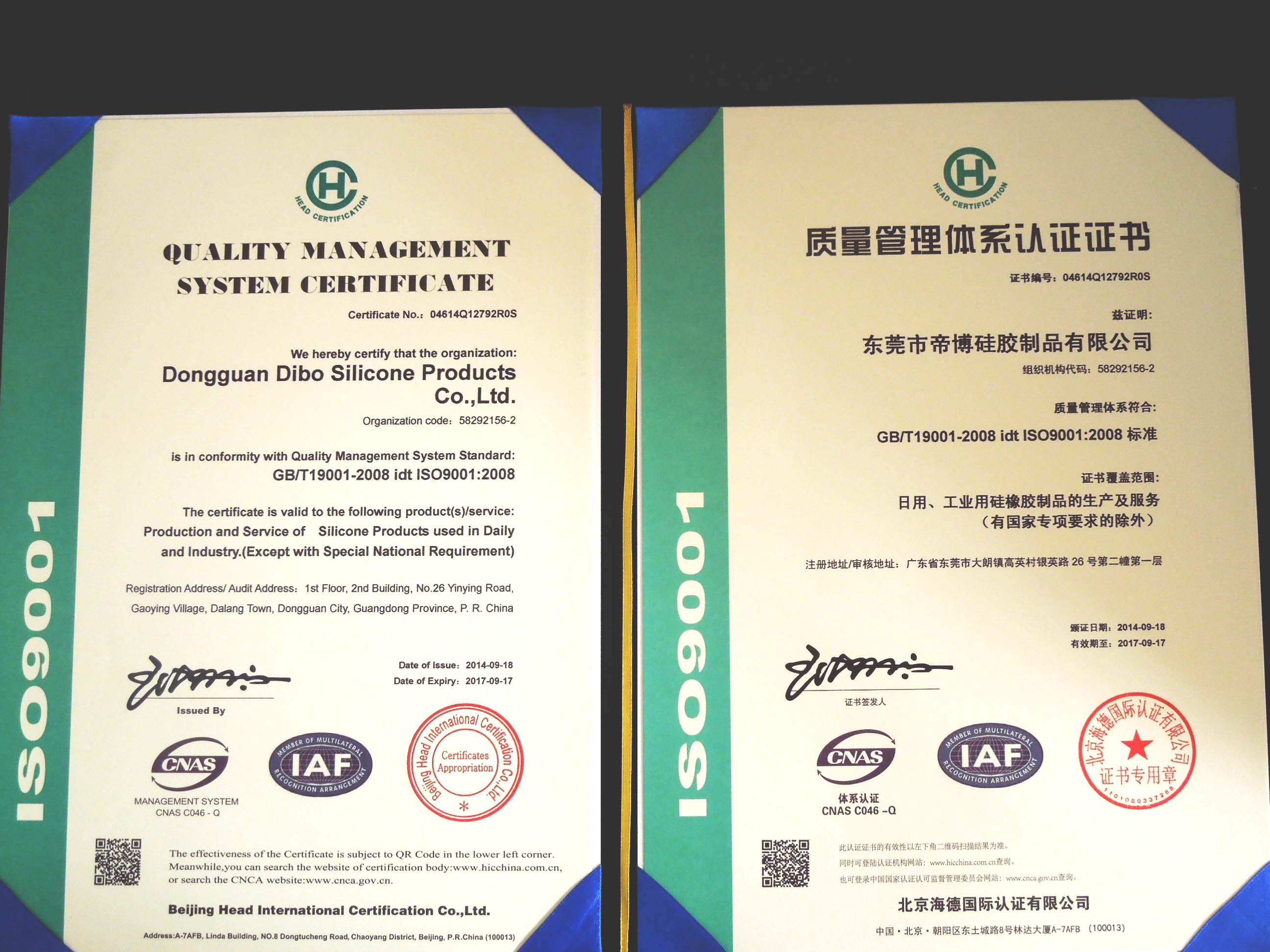目前,公司已經順利通過ISO9001質量管理體系認證,并取得相關證書,