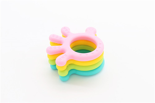 硅膠手指牙膠主要功能為兒童咬合玩具,目的為提升兒童牙齒與手腦的靈活力度,作為基礎的軟質磨牙咬合產品它能在嬰兒成長過程中起到良好的作用,呆萌卡通形狀可在視覺上讓兒童更加安分,自主玩耍